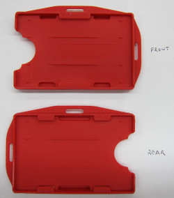 Description Holds 2 Standard Credit Card Size ID Cards (1 Front/1Back) Horizontal or Vertical Layout Slot holes allow for easy connection to Lanyard, Badge Reels or Standard ID clips Please email me for bulk supplies as we have 1000's in stock
