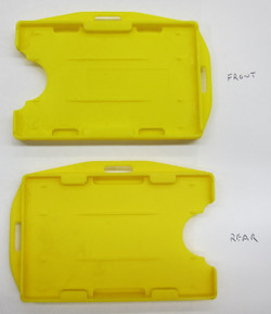 Description Holds 2 Standard Credit Card Size ID Cards (1 Front/1Back) Horizontal or Vertical Layout Slot holes allow for easy connection to Lanyard, Badge Reels or Standard ID clips Please email me for bulk supplies as we have 1000's in stock