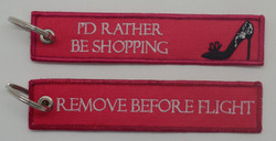 Description I'D RATHER BE SHOPPING BRIGHT PINK Remove Before Flight Key Tag High Quality Embroidery Bright Pink Australian Stock 140mm x 30mm